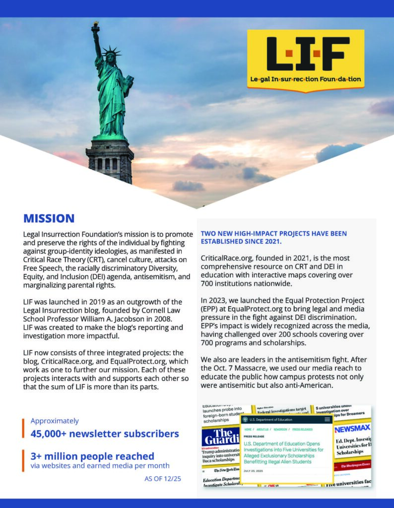 EPP is a project of the Legal Insurrection Foundation (LIF), a Rhode Island tax-exempt 501(c)(3). LIF’s 2024 Annual Report covers the range of activities of the Foundation.