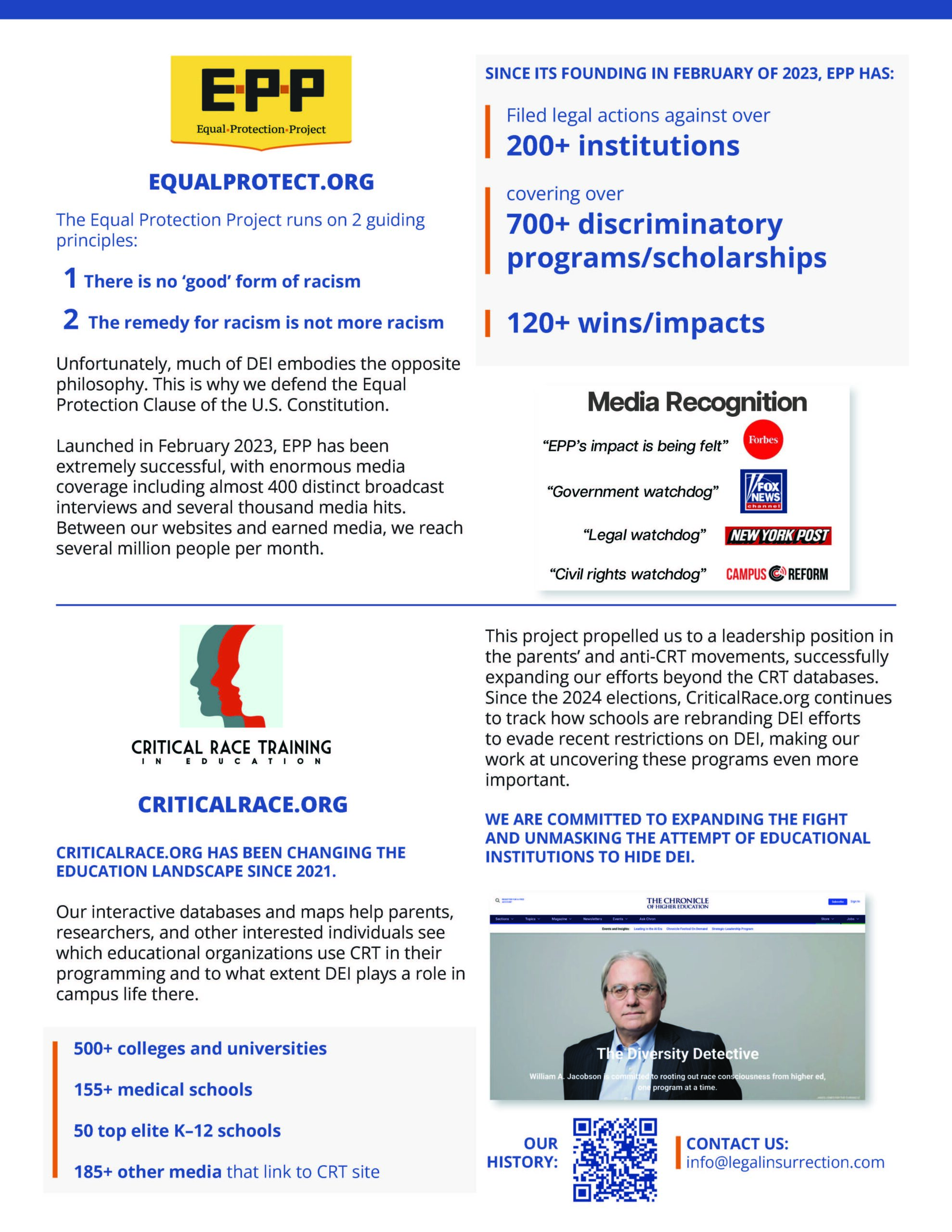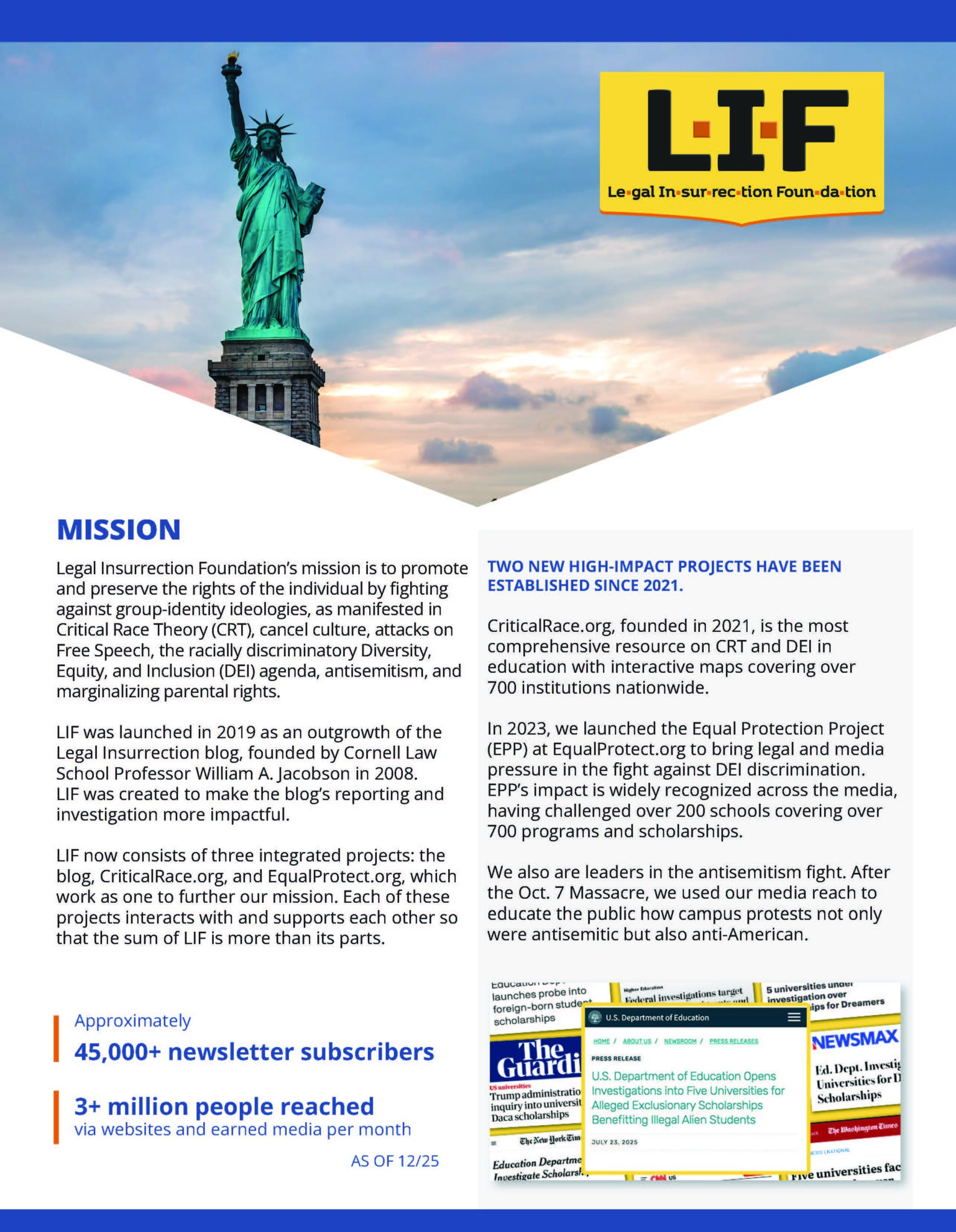 EPP is a project of the Legal Insurrection Foundation (LIF), a Rhode Island tax-exempt 501(c)(3). LIF’s 2024 Annual Report covers the range of activities of the Foundation.